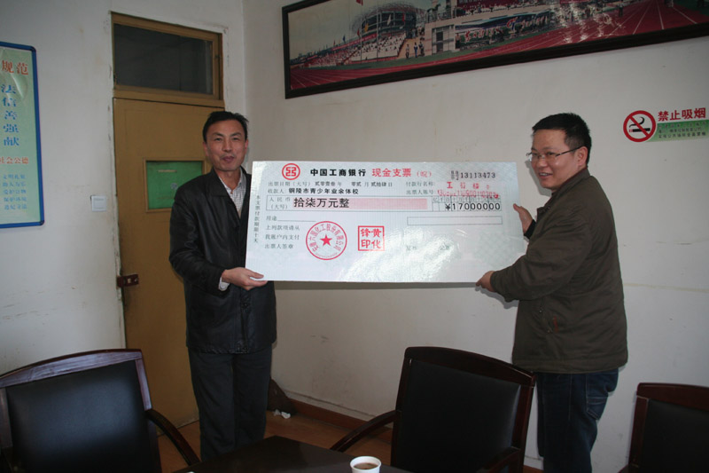 1月25日上午,z6mg人生就是博化工公司黨委副書記黃明強代表公司向市體育局青少年業余體校頒發17萬元獎金。